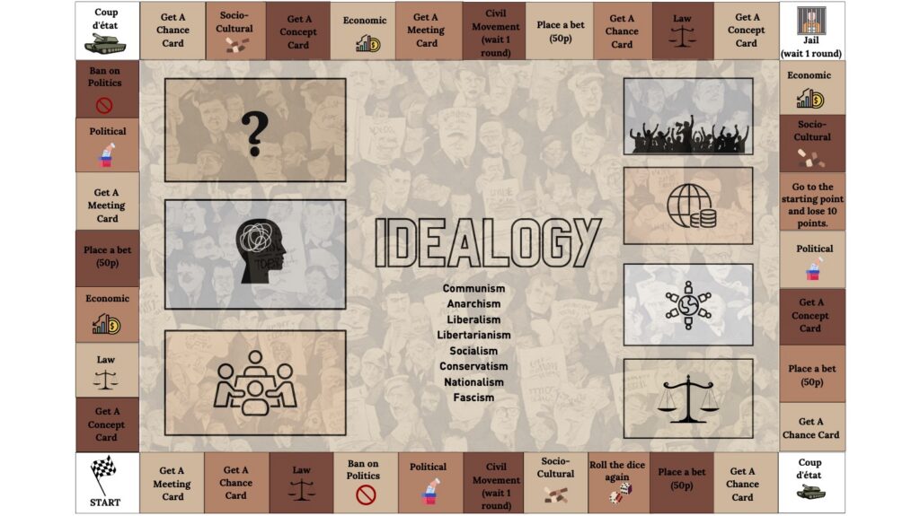 Step into the shoes of different political ideologies and see the world through their eyes! Players navigate crises, debates, and strategies as Communists, Liberals, Nationalists, and more—learning how ideas shape decisions while competing to keep their ideology hidden.